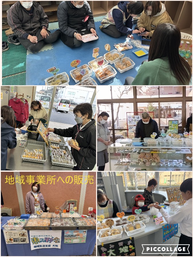 ・2月は活動日が少ないため、販売先のほかイベントにも参加させていただきました。成田市内のホテルで近隣の事業所様たちの仲間入り。「大地」を知っていただくことができたかな~!感染症にも負けず、今月も皆さん頑張りました。